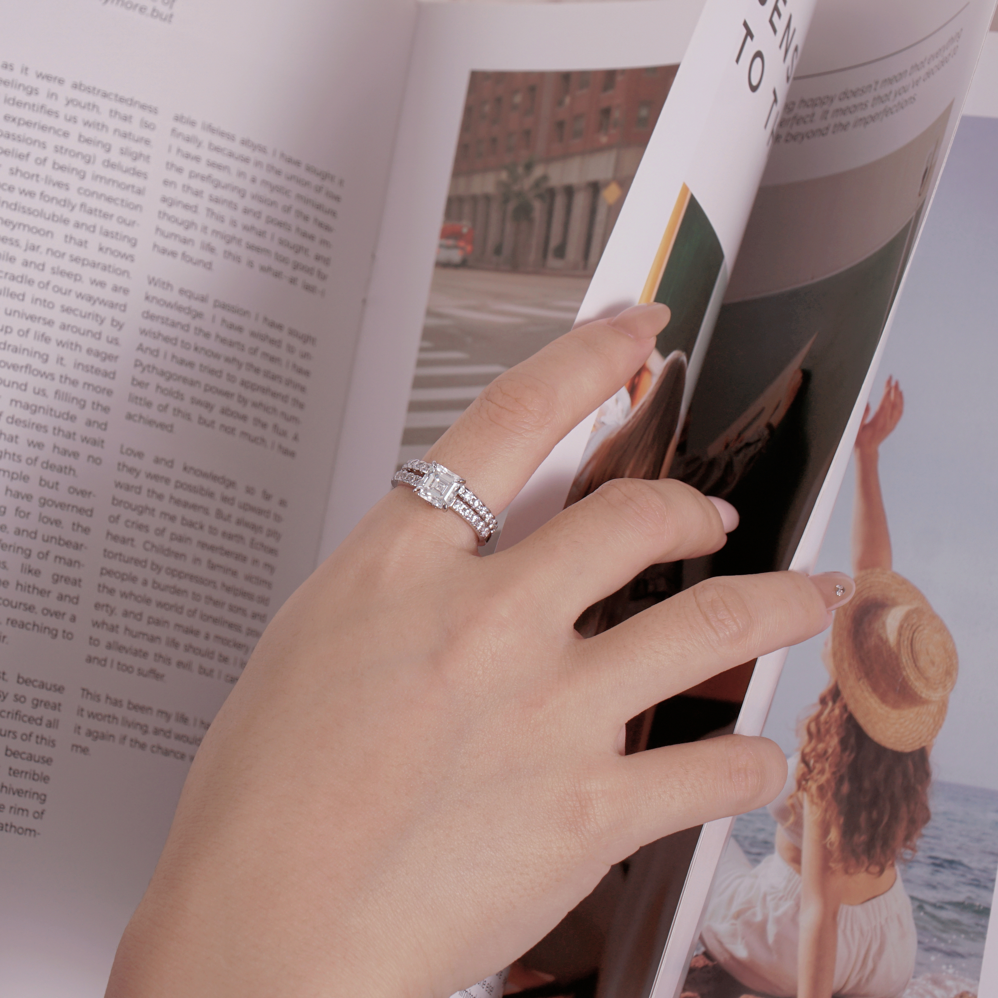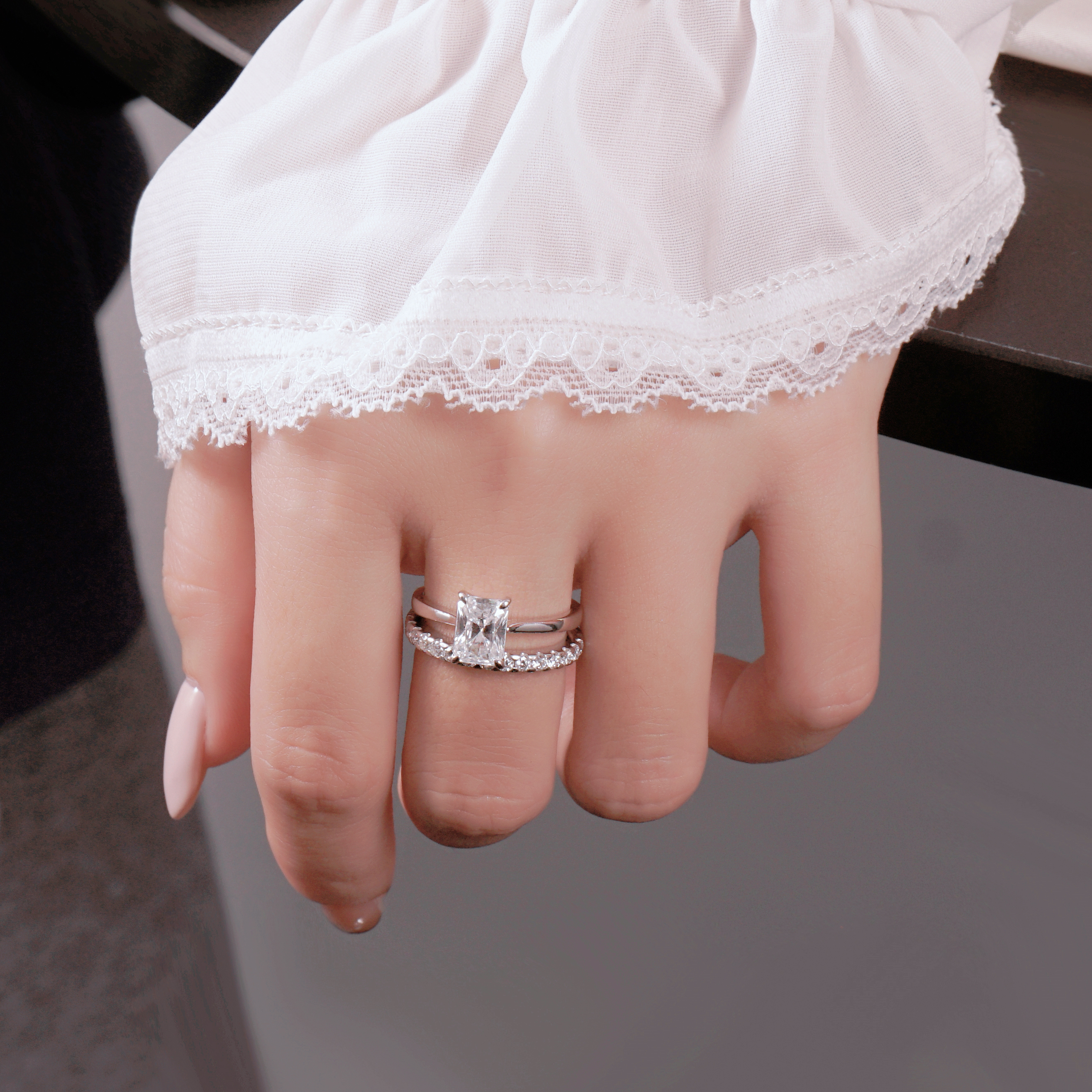 Halo Heart Cut Ring Set Heart Pair Stacking Ring Copper Band Synthetic Moissanite Ring Jewelry