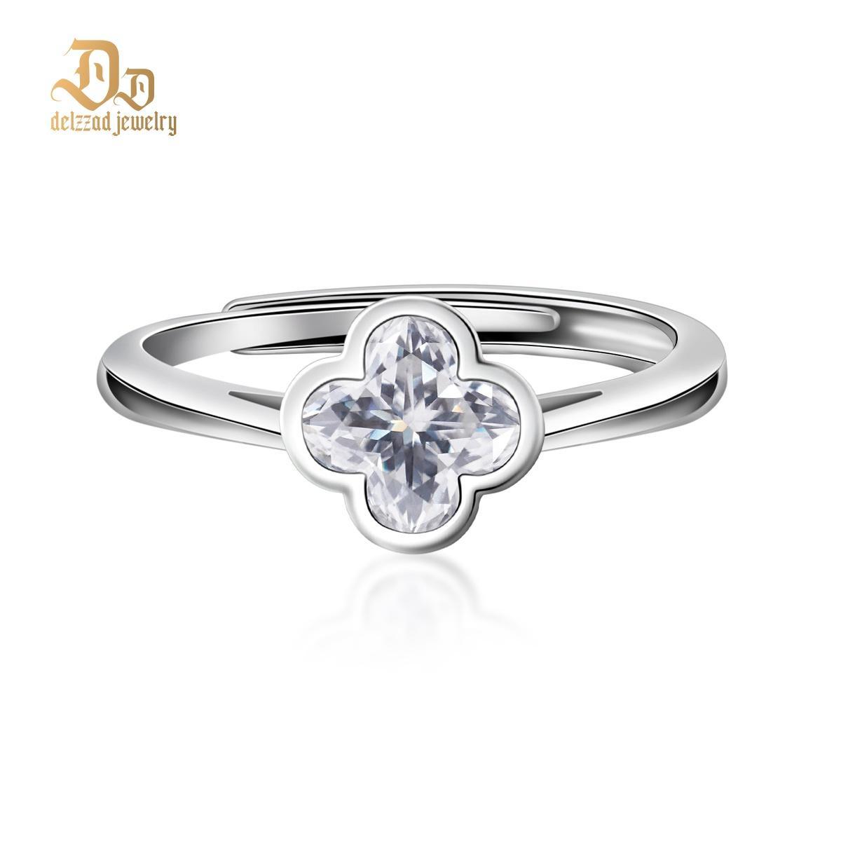 S925 1ct Adjustable Four-Leaf Clover Ring Lab-Created Moissanite Engagement Ring