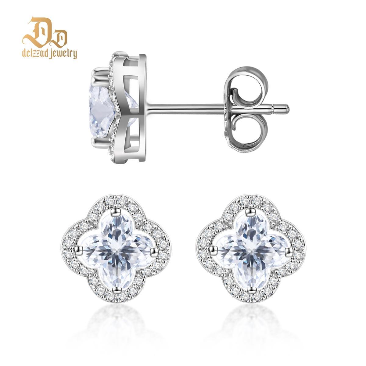 S925 Sparkling Iced-Out Clover Earrings Lab-Created Moissanite Stud Earring terling