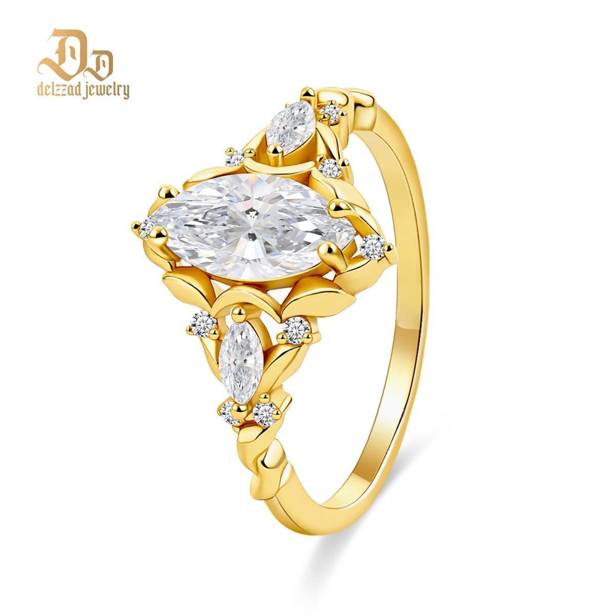 Vintage Marquise Cut 14K Gold-Plated Engagement Ring S925 Synthetic Moissanite Ring