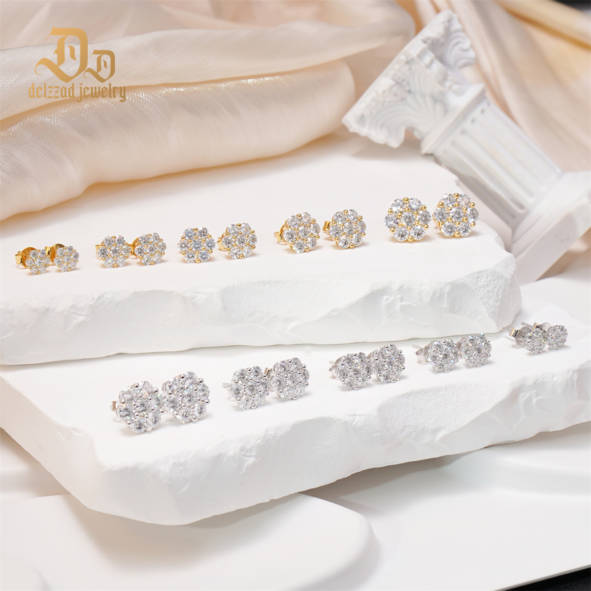 IcyBloom Floral Shine Stud Earrings 925S & VVS Moissanite