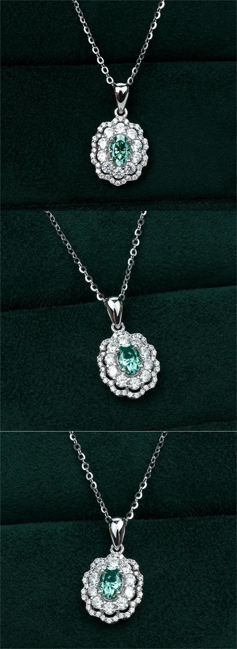 0.5ct Green Ripple Pendant Necklace Oval Synthetic Moissanite Necklace S925 Chain
