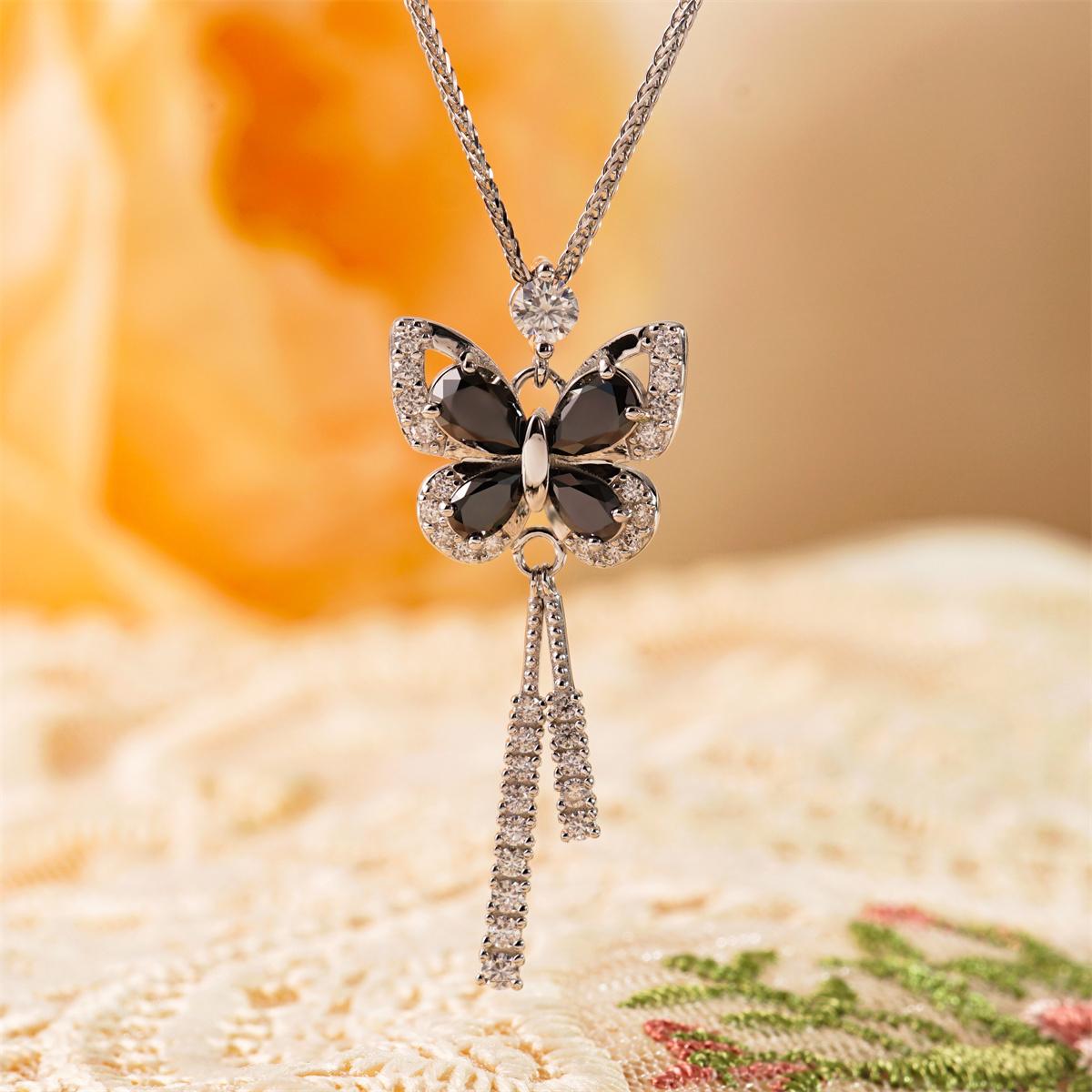 1.6ct Black Butterfly Synthetic Moissanite Necklace Chain In 925 Sterling Silver