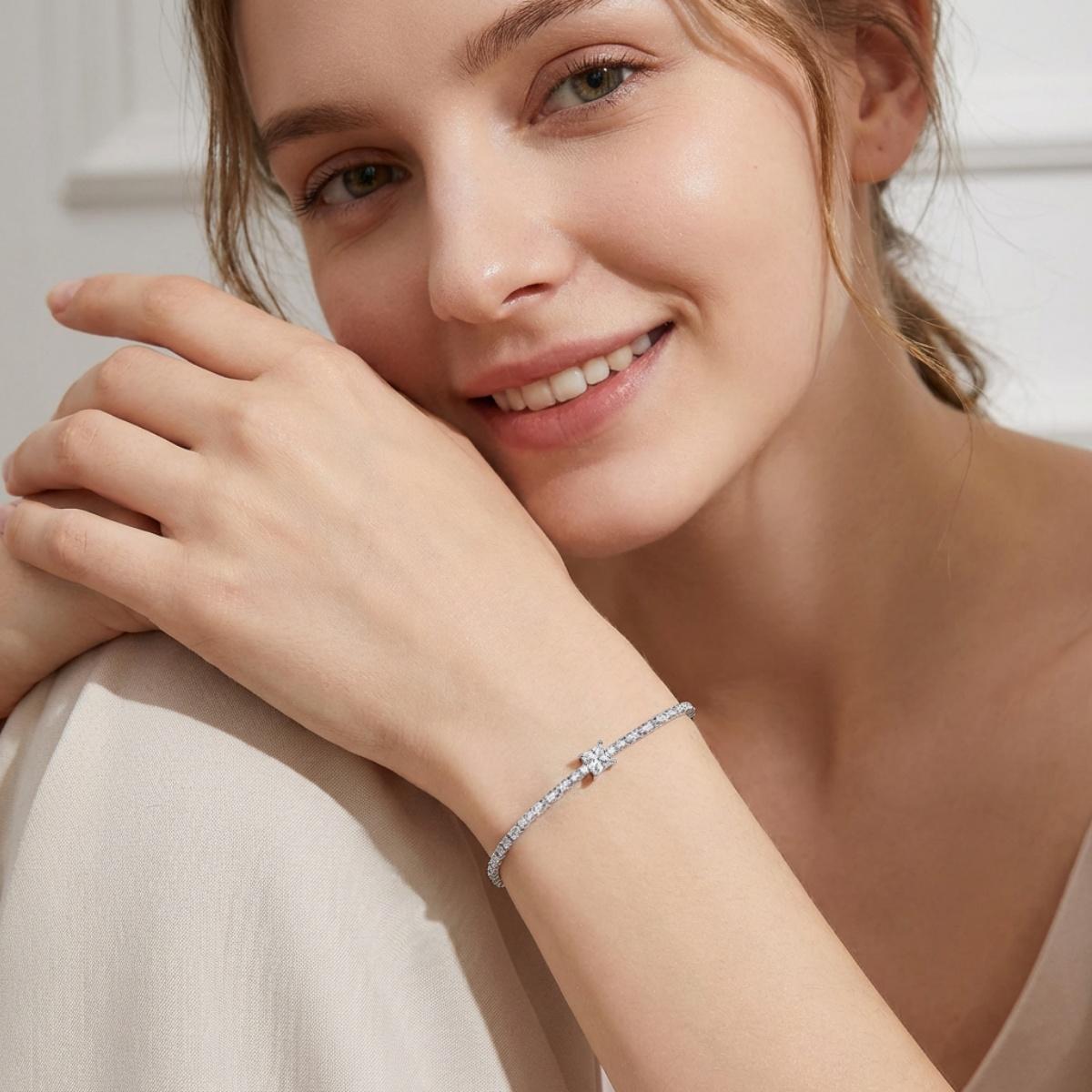2.5ct Boundless Love Bracelet Classic Tennis Chain Adjustable Slider Bracelet Princess Cut Synthetic Moissanite Bracelet Copper Chain