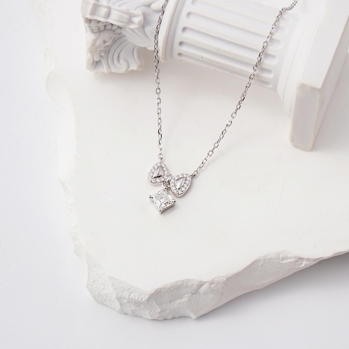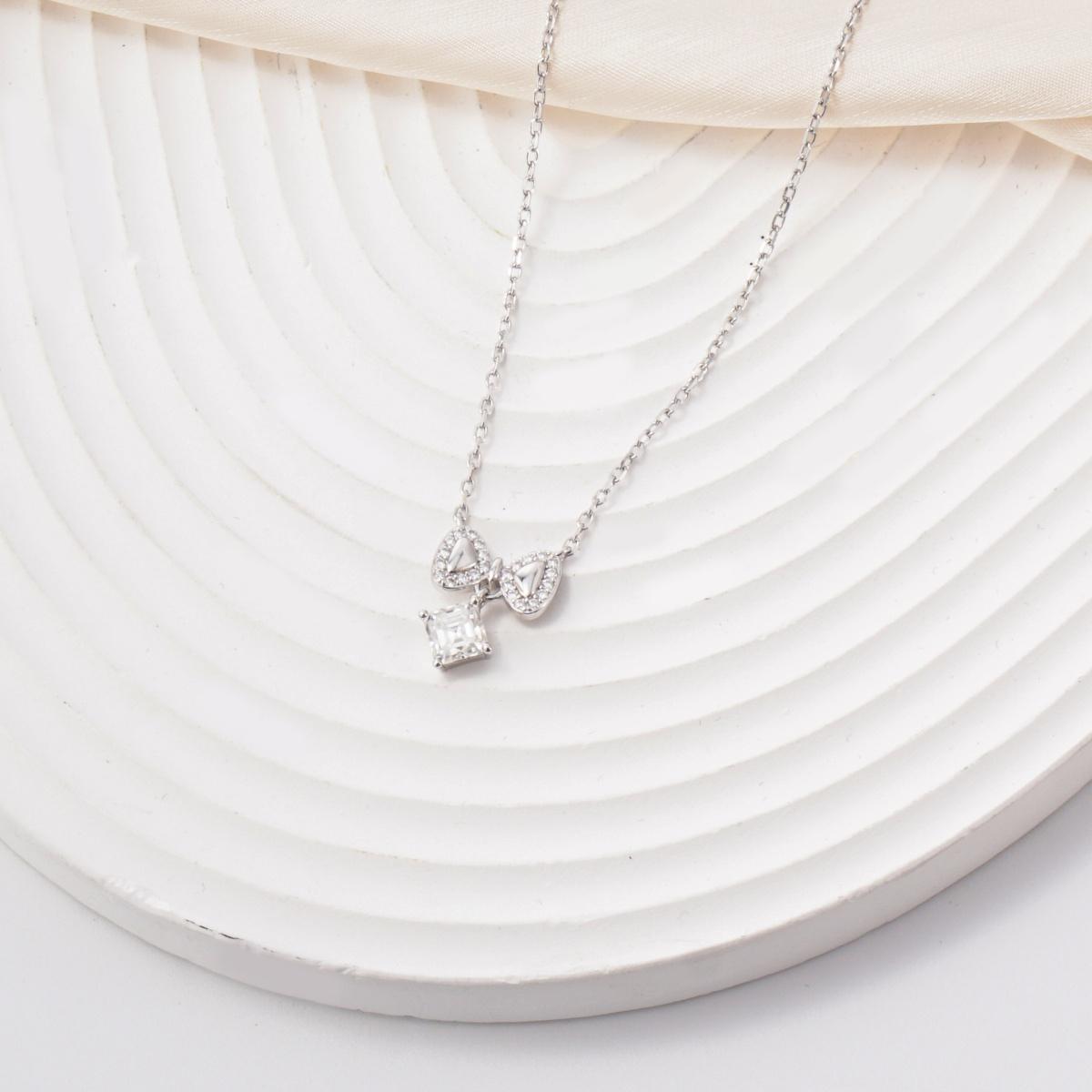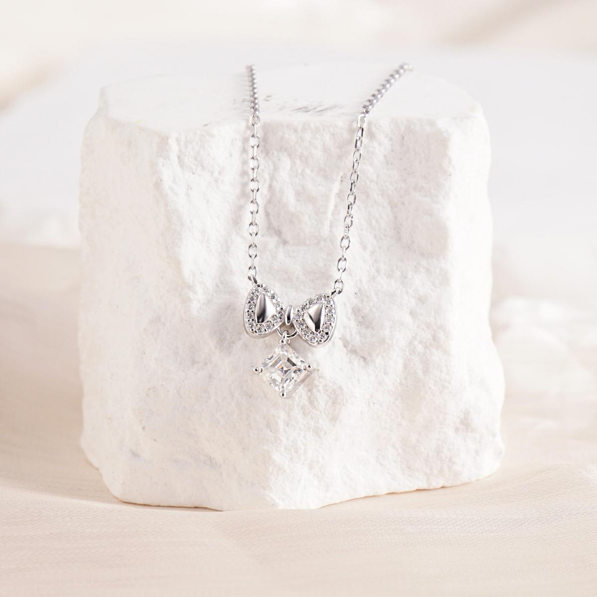 Bowknot Necklace Asscher Square Chain VVS Synthetic Moissanite S925 Chain