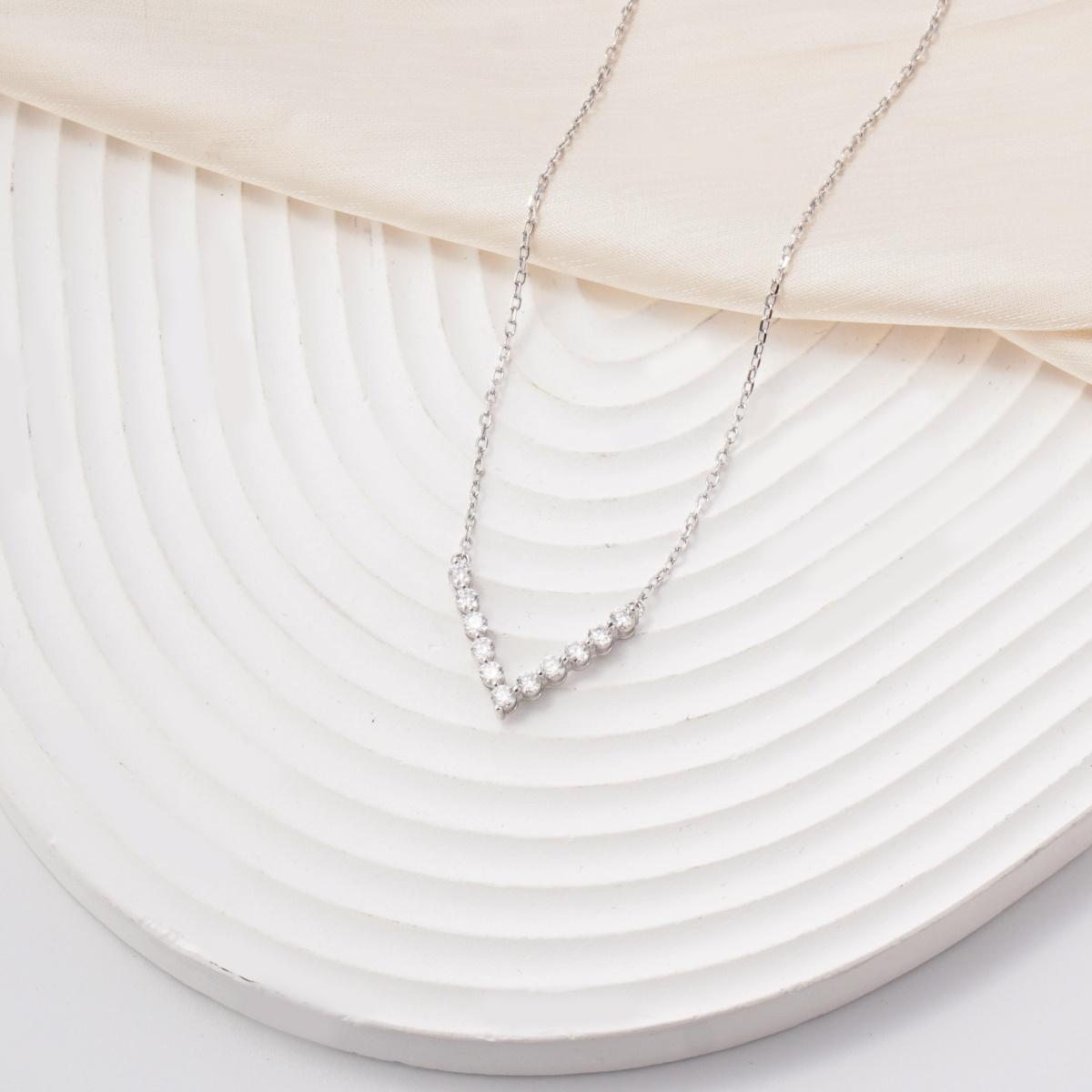 Classic V-Shaped chevron Necklace Round Cut VVS Synthetic Moissanite S925 Chain