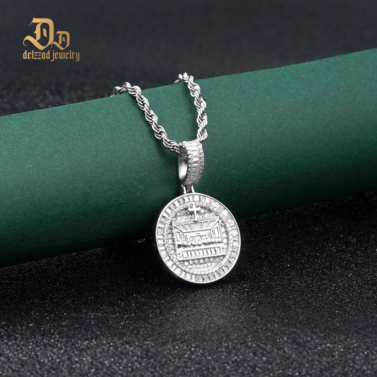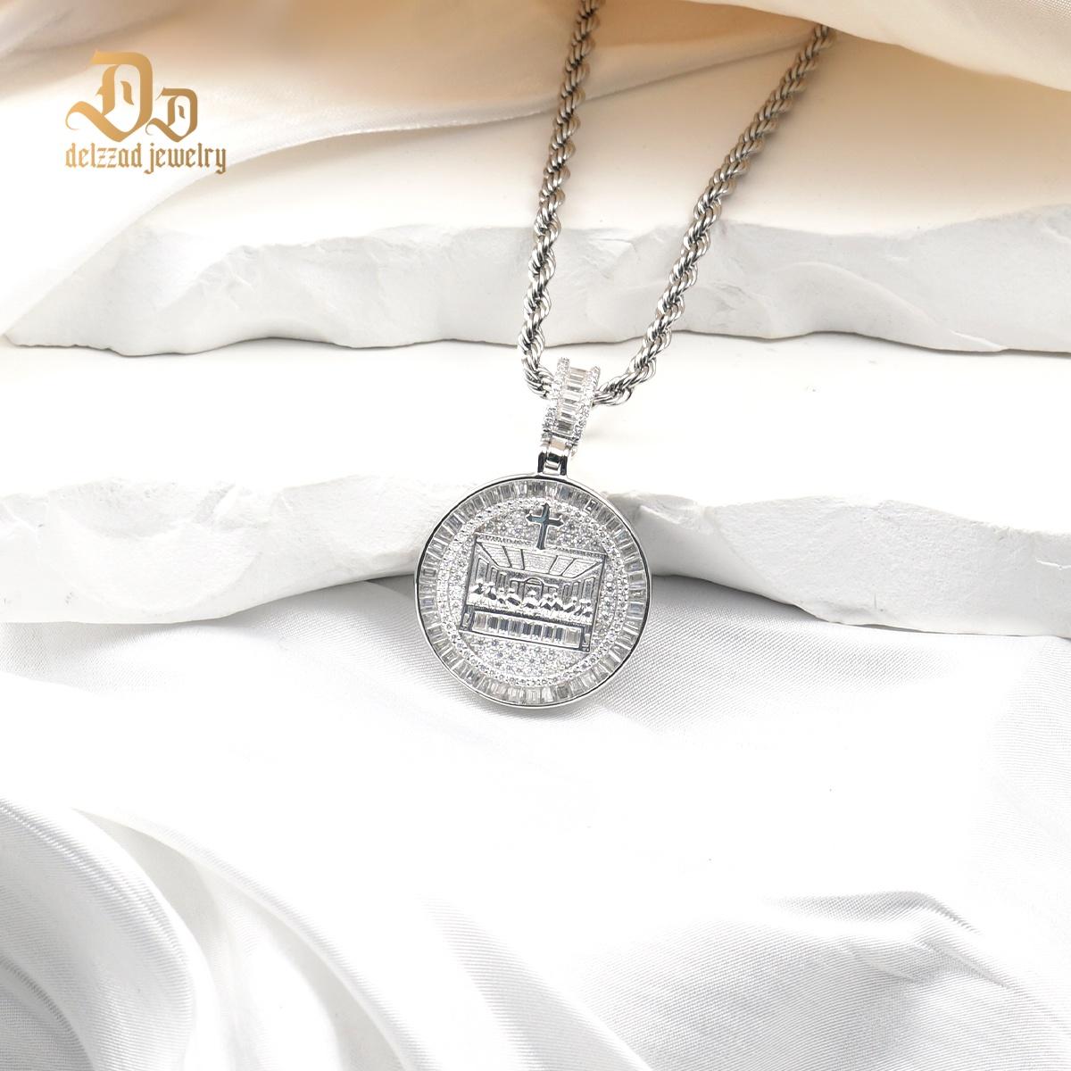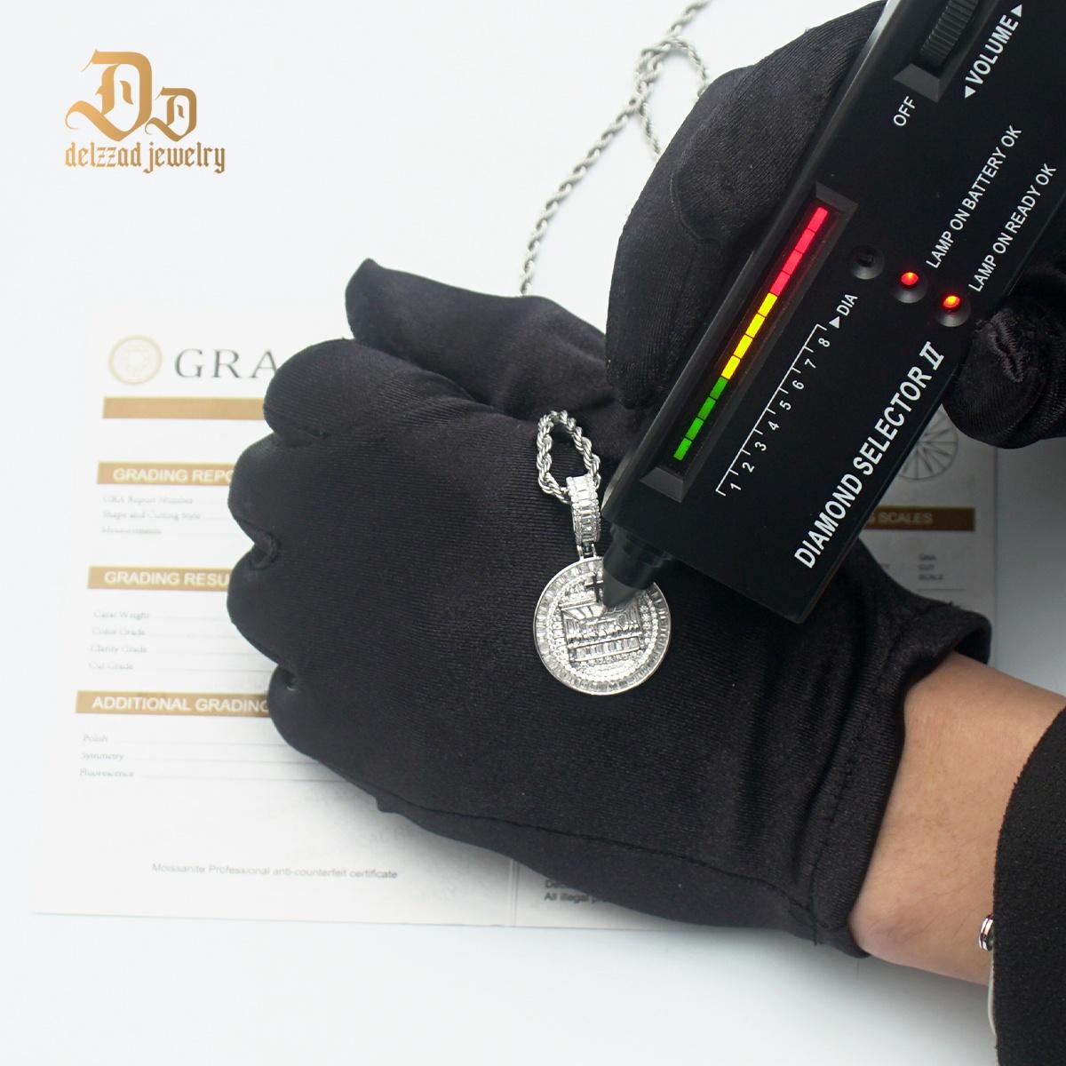 Hip Hop Spiritual Belief Supper Engraved Cross Charm Chain Pendant Necklace VVS Synthetic Moissanite S925 Chain